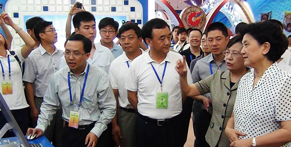 時任中央政治局委員、中央書記處書記,中宣部部長劉奇葆在江蘇省委領導陪同下考察鳳凰創壹開發的VR仿真教學培訓系統