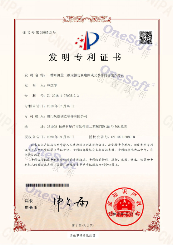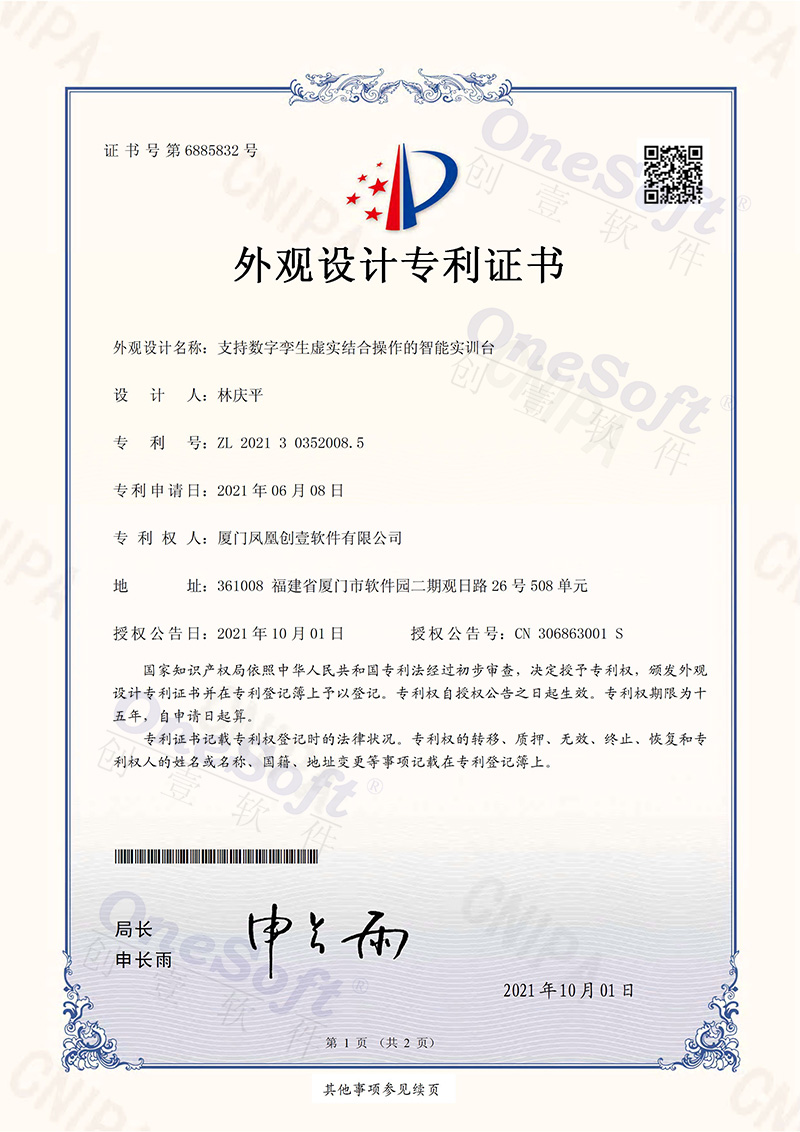 鳳凰創壹智能實驗臺 (外觀設計專利證書)