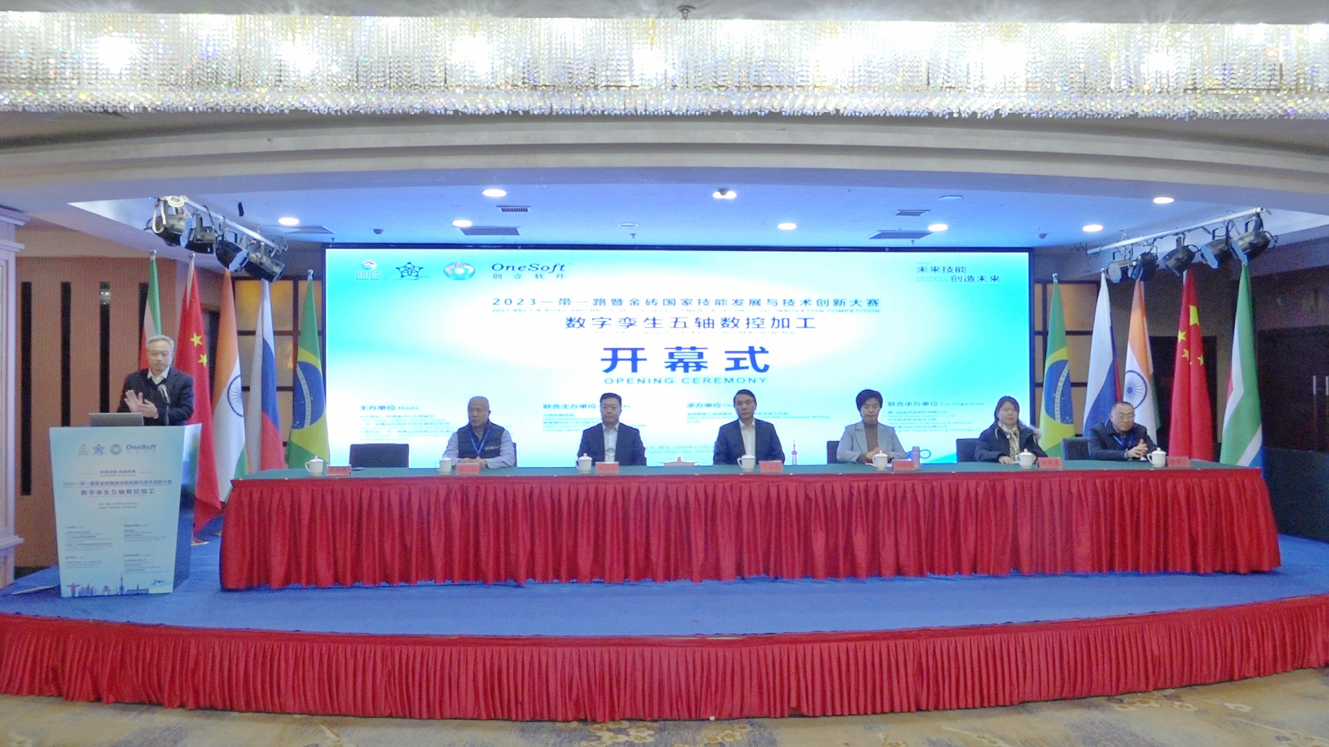 ▲金磚國家技能發展與技術創新大賽組委會副主任何美連宣布開幕