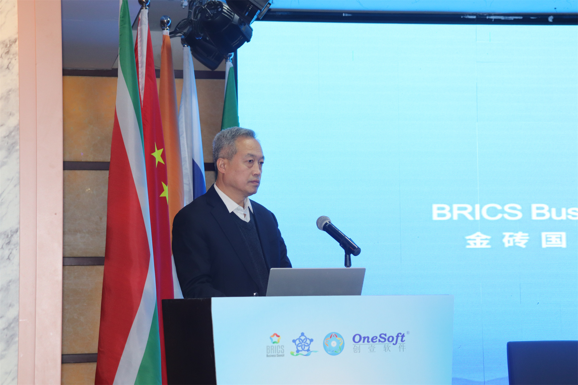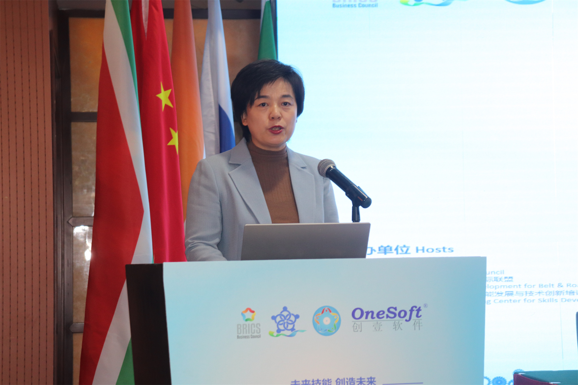 ▲金磚國家工商理事會(中方)技能發展工作組組長、金磚國家技能發展與技術創新大賽組委會執委會主席劉振英視頻致辭