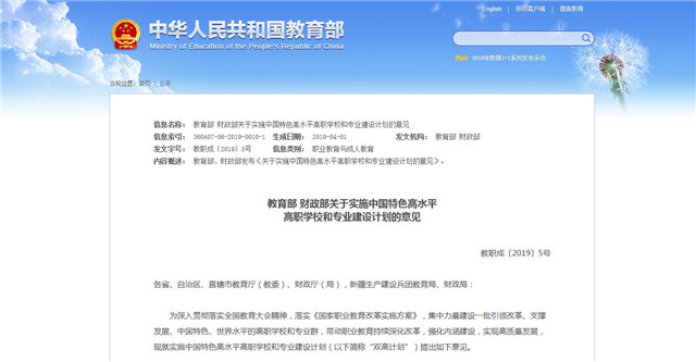 教育部財政部聯合發文 高職迎來雙高計劃