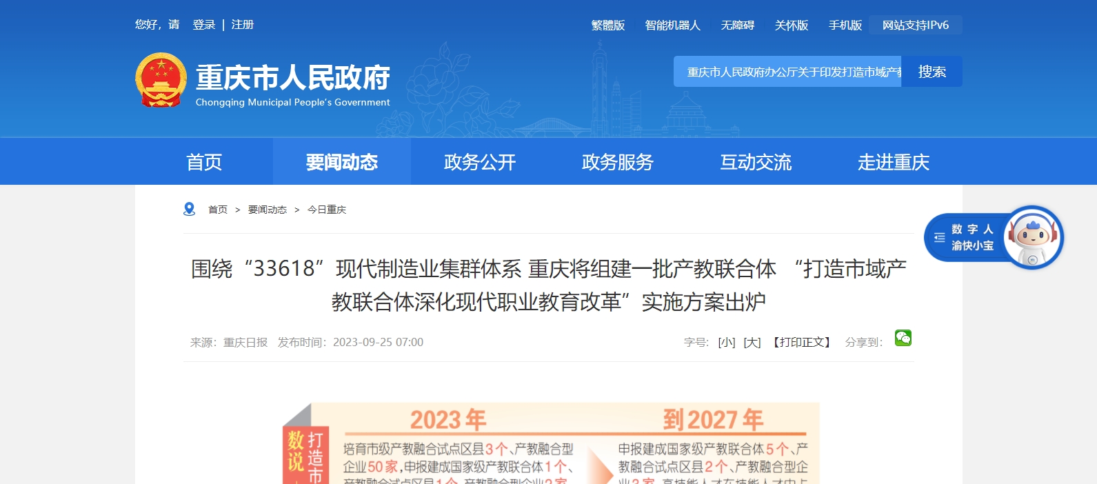 圍繞“33618”現代制造業集群體系 重慶將組建一批產教聯合體 “打造市域產教聯合體深化現代職業教育改革”實施方案出爐 從市政府辦公廳獲悉,《重慶市人民政府辦公廳關于印發打造市域產教聯合體......