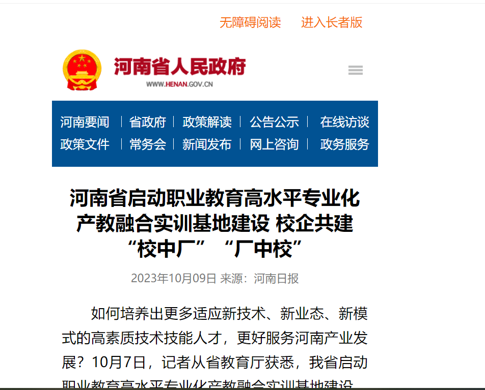 河南擬遴選建設30個高水平專業化產教融合實訓基地