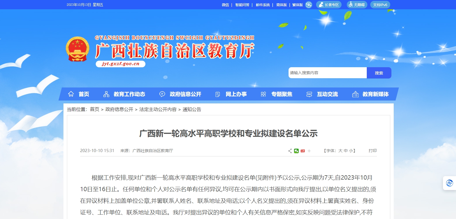 廣西壯族自治區教育廳近日在其官方發布《廣西新一輪高水平高職學校和專業擬建設名單公示》的通知,以下是名單